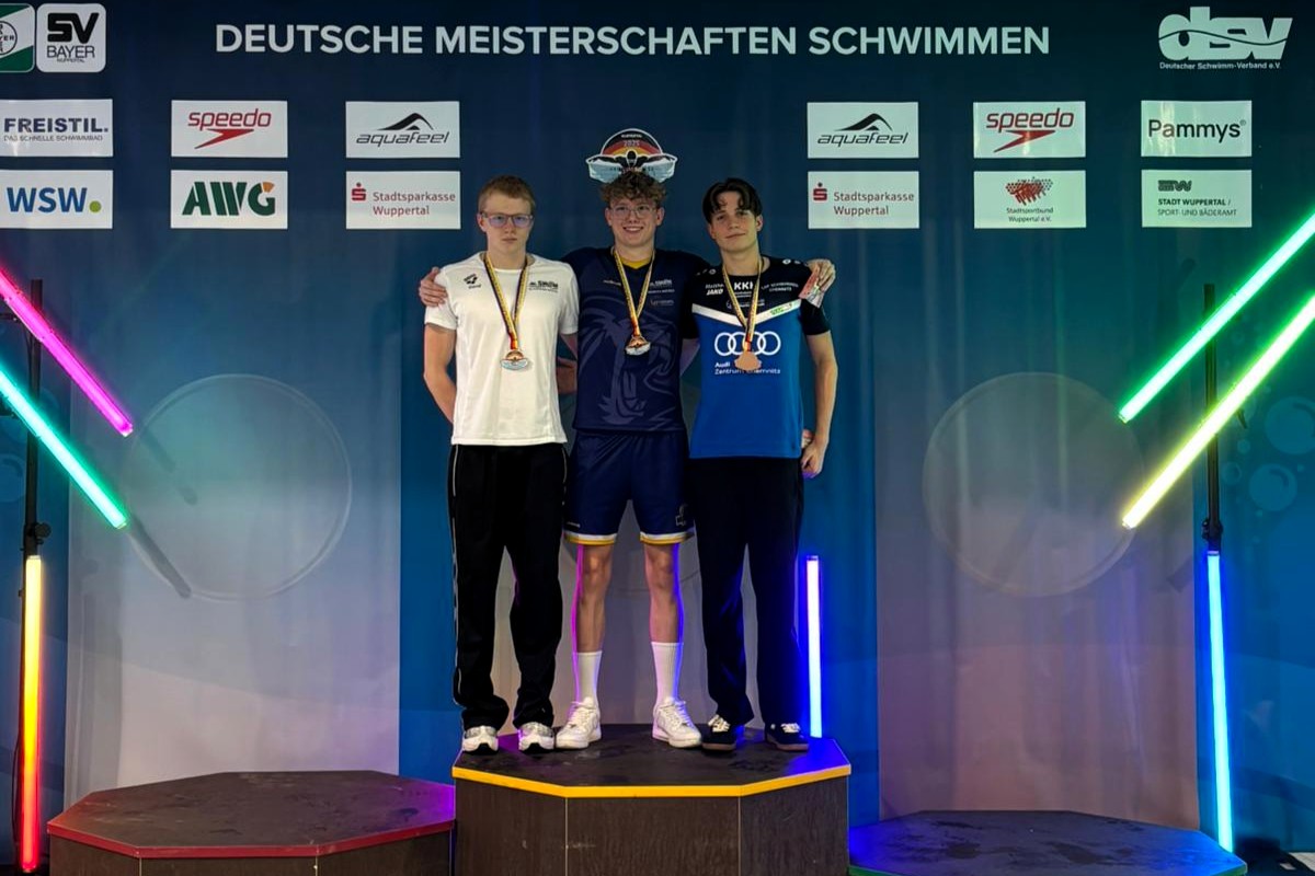 Simon Brugger (Jg. 2009) sorgte gleich am ersten Wettkampftag für ein Highlight: Im schnellsten Lauf über 1500m Freistil holte er sich in 15:03,46 Min. den deutschen Vizemeistertitel – und das mit neuem bayerischen Altersklassenrekord! Damit unterbot Simon die bisherige Bestmarke des ebenfalls in Bayreuth groß gewordenen Olympiateilnehmers Florian Vogel (15:35,40 aus dem Jahr 2010) deutlich. Außerdem stellte er einen neuen Vereinsrekord auf – eine herausragende Leistung des inzwischen in München trainierenden Nachwuchstalents, der aktuell noch für den SV Bayreuth an den Start geht!