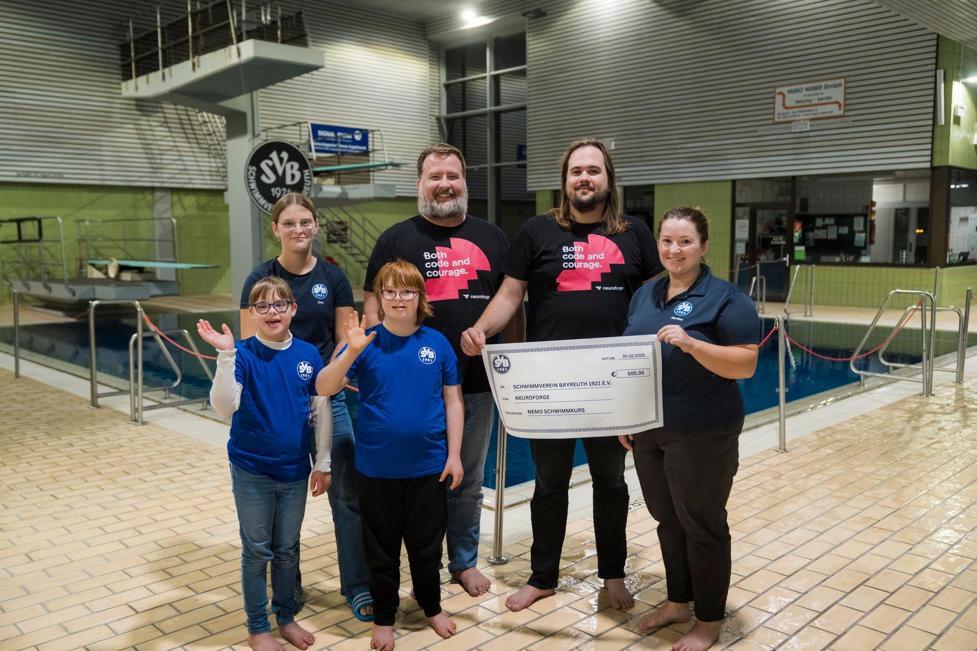 Der IT-SpezialistNeuroforge aus Trebgast hat dem Schwimmverein Bayreuth eine Spende in Höhe von 500 Euro für den inklusiven Nemo-Schwimmkurs überreicht. Mit dem Kurs ermöglicht der Verein Kindern mit besonderem Förderbedarf den sicheren und spielerischen Zugang zum Element Wasser.